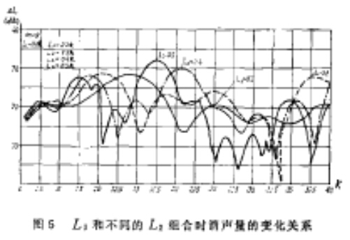 如圖所示:當(dāng)?shù)谝磺婚L度L1為第二腔長度的L2的一倍時(shí),雙腔消聲器明顯地對某些頻率失效,在某些頻段出現(xiàn)較深的低谷,因此在設(shè)計(jì)雙腔擴(kuò)張式消聲器時(shí),應(yīng)避免采用L1/L2=2的結(jié)構(gòu)方案。